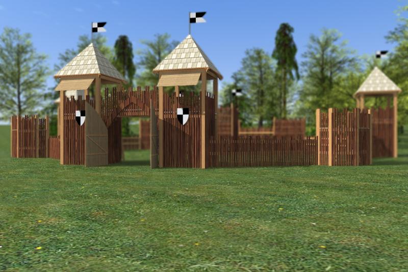 Další fotky pevnosti najdete v připojené fotogalerii pod článkem. Současná pevnost, kterou znají dřívější účastníci táborů, bude rozšířena o velké nádvoří a o dvě hlídkové věže (každá pro dva lukostřelce), dále dvě půlkruhové bašty s cimbuřím (každá až pro tři až pět lukostřelců) a masivně opevněnou brána s dalšími dvěma dobře opevněnými věžemi. Co na obrázku není vidět, jsou různé vychytávky, které tato pevnost má, jako např. několikery tajné dveře, které se mohou bleskurychle otevřít a obránci mohou udělat výpad proti útočníkům či dobývacím strojům.