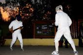 14.července večer řinčely na Březové chladné zbraně. A že jich bylo. Jednoruční a jedenapůlruční meče, šavle, nechyběla vikingská série sax, scramasax a spatha, dýky, kordy a flerety, ano, dokonce i šerm bodákem na pušce nasazeným se předváděl. A jak se meči bránit holí, až to útočníka bolí? I to jsme viděli, a až nám bylo figuranta líto. Lepší teleport do středověku si nelze představit, a každý z dvou set přihlížejících táborníků teď se znalostmi chladných sečných a bodných zbraní strčí do kapsy kdejakého zámeckého průvodce, jakmile se dojde do zbrojnice. Našlápnutý večer zakončila působivá ohňová show...co dodat? Kráse chladných zbraní se prostě dá podlehnout, a čím o nich jeden více ví, tím je toto pokušení větší...kolik umu a krásy se skrývá za těmito nástroji, jimiž se psaly středověké dějiny...