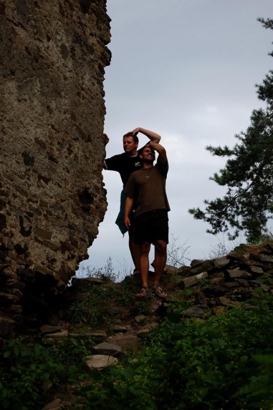 Čtvrtý den ráno necháváme kola i batohy dole v kempu, a takto příjemně "nalehko" vyrážíme zdolat maličkou část Pálavy, kopec z kterého zhlíží zřícenina hradu Děvičky. Přeci jen ale je to celkem slušné stoupání, zato výhled z Děviček je odměnou důstojnou za vynaložené úsilí. Ani se nám nechce dolů, rozhled odtud je prostě bombastický. A když se nakonec přeci jen zvedáme k návratu, je častým tématem našich rozhovorů to, jak by mohla vypadat Moravia příští rok, nebo jaké by mohlo být její pokračování.