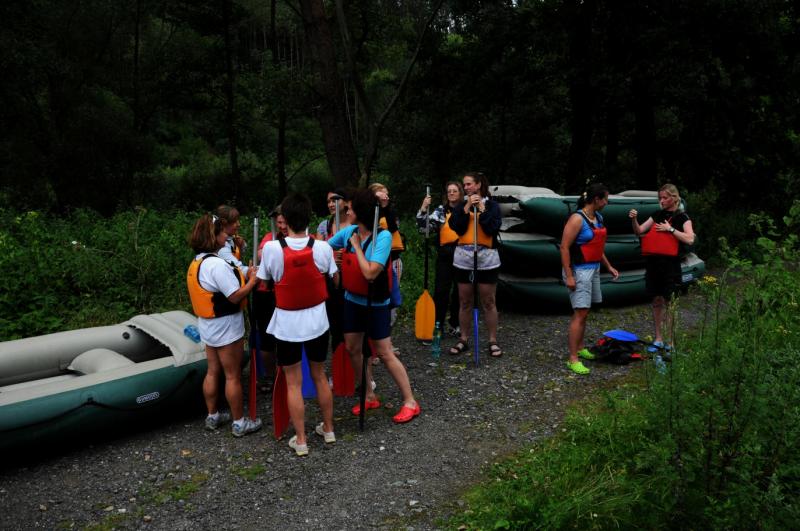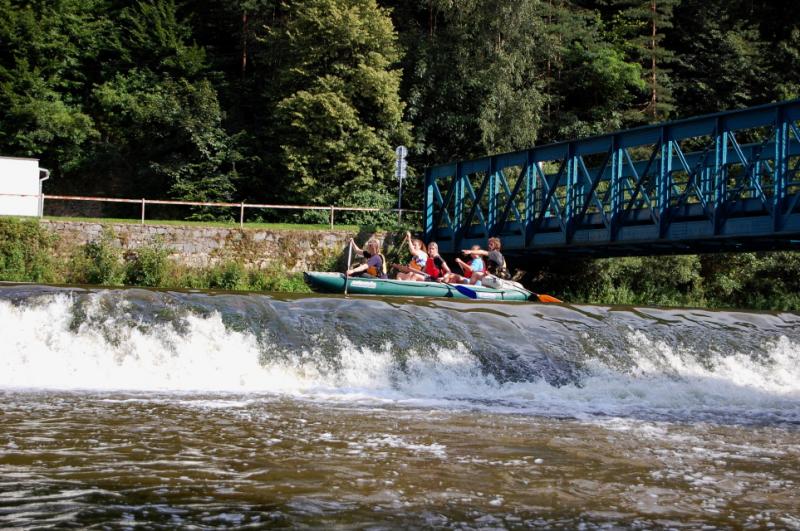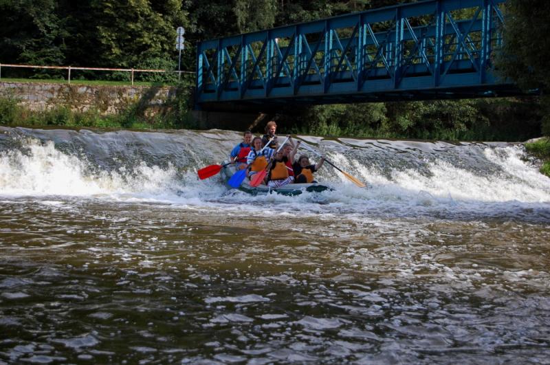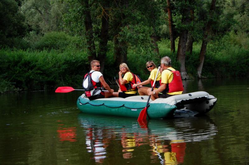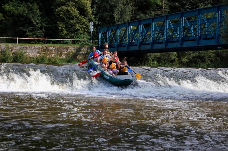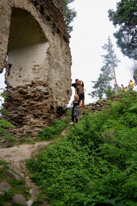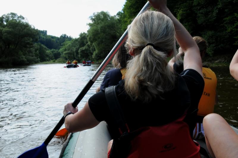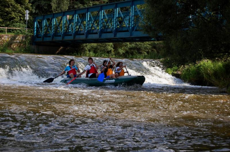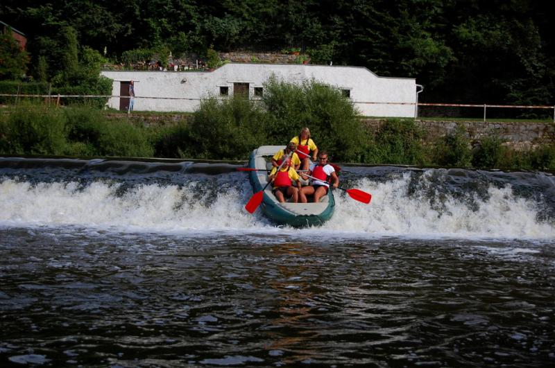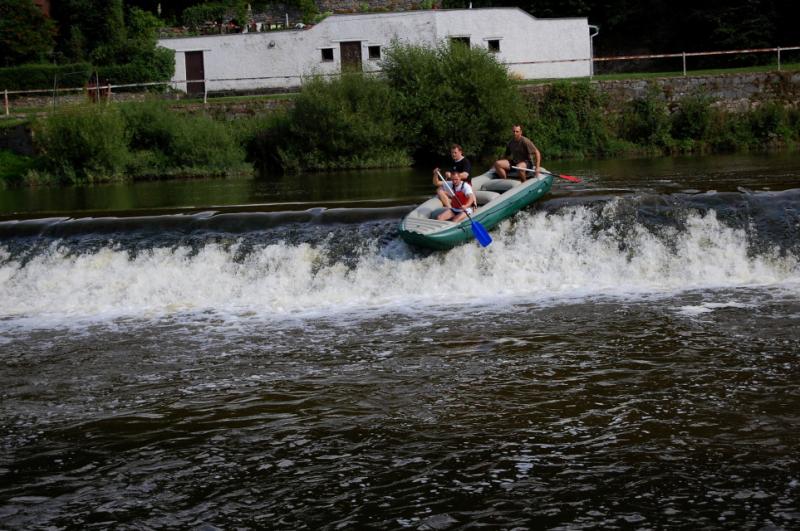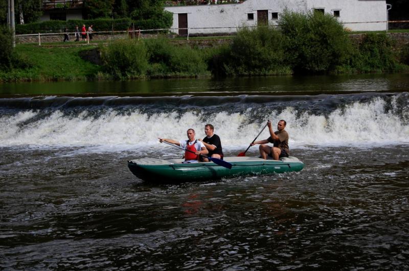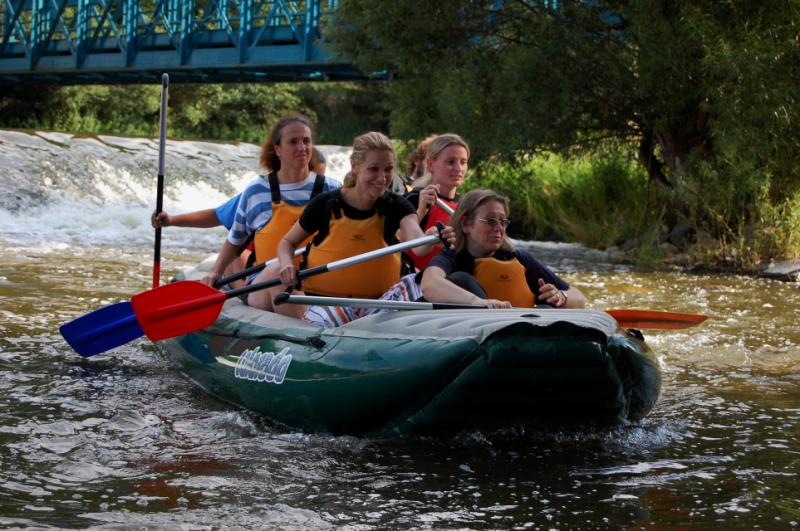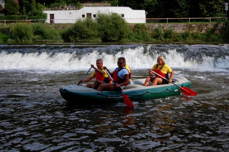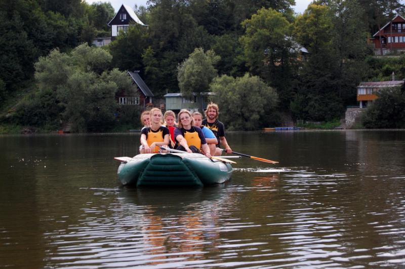 Začínali jsme na řece Dyji, asi 2 kilometry od Rakouských hranic. První část byla zajímavá, řeka tekla, i nějaký ten jez jsme na raftech sjeli. První zastávka byla v Podhradí nad Dyjí, s krátkým výšlapem na zříceninu kdysi velkého hradu Frejštejn. Pak rychle zpátky do raftů a jedeme dál...řeka se postupně začala rozšiřovat a rychlost toku klesala snad každým metrem. Jakmile se údolí rozevřelo, opřel se do raftů silný protivítr, takže dopádlovat do cílové stanice prvního dne - kempu Bítov, nás stálo značné úsilí. Tohle musíme do příště vychytat, řekli si Tom, Jirka a Lída, když viděli unavené účastníky vystupovat na břeh. Nicméně, pravdou je, že právě z vody si lze nejlépe prohlédnout mohutnou zříceninu hradu Cornštejn a také hrad Bítov, který shlíží ze skal na Vranovskou přehradu...ale i to patří k expedicím, a my už víme, jak to příště udělat tak, abychom nemuseli jet nudnou část po přehradě a přesto viděli její největší krásy.